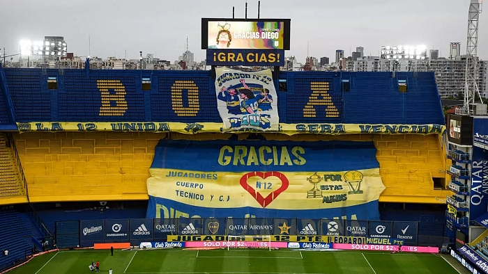 وحضرت ابنة مارادونا، دالما، لملعب لا بومبونيرا، وجلست في نفس المقعد الذي كان لوالدها يؤازر الفريق منه.
