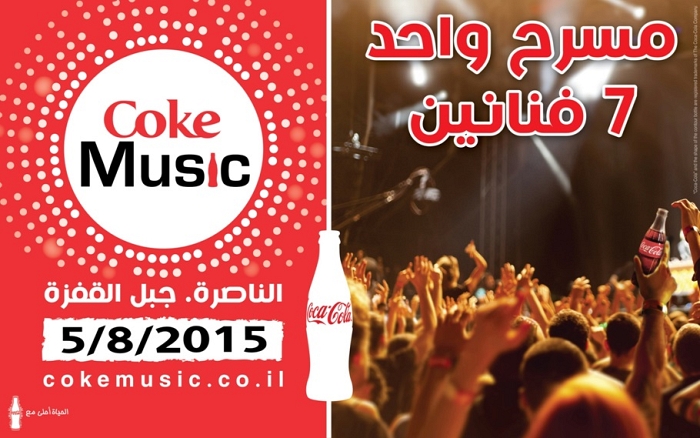شركة كوكا- كولا تحتفل بالصيف مع الشبيبة في اطار تجربة صيفية فريدة. حفل صيفي تحت عنوان Coke Music حفل ضخم يضم كل الفنانين المعروفين سيقام في تاريخ 5 - 8 -2015 في مدرج جبل القفزة في الناصرة. سيشارك في الحفل المخصص للشبيبة من جيل 15-20 عاما، عدد من أبرز الفنانين : وسام حبيب، الفائزة بلقب السنة الثانية من برنامج The Voice لينا مخول، اياد طنوس، سهيل فودي وفرقة زمن، بأسلوبها المميز الذي يمزج بين الموسيقى العربية وموسيقى الفلامنكو، تامر نفار وفرقة دام، الحوس باشا ومريم طوقان.