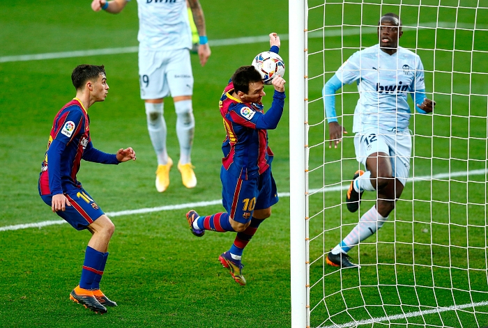 وسجَّل ميسي هدفا في مرمى فالنسيا، أمس السبت، ضمن الجولة 14 من الدوري الإسباني، في المباراة التي انتهت بالتعادل 2-2.