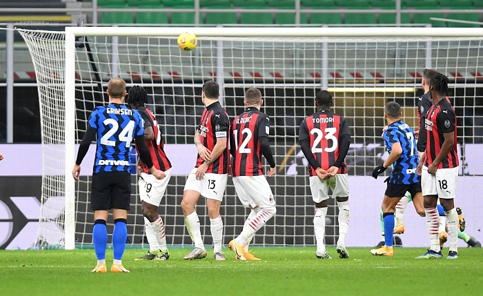 وخطف إريكسن هدف الفوز في الدقيقة 90+7، بعدما نفَّذ ضربة حرة مباشرة أسكنها شباك ميلان بطريقة رائعة، وقاد النيراتزوري للدور نصف النهائي من مسابقة كأس إيطاليا.