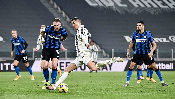 ورغم محاولات الطرفين للوصول إلى الشباك، إلا أن سمير هاندانوفيتش، حارس إنتر، حرم كريستيانو رونالدو من التسجيل في مناسبتين، فيما افتقدت هجمات النيراتزوري للخطوة الحقيقية.