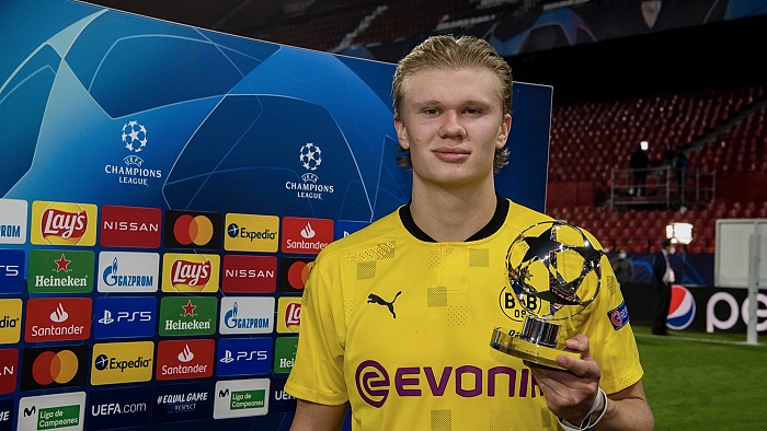 وسجل مبابي، البالغ عمره 23 عاما، 19 هدفا في دوري الأبطال قبل بلوغه 21 عاما ويحتفل هالاند بعيد ميلاده في يوليو.