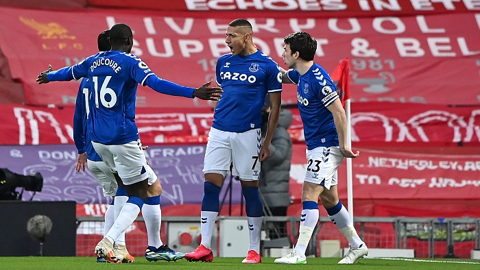حسم إيفرتون ديربي الميرسيسايد وهزم مضيفه ليفربول بنتيجة 2-0، في واحدة من قمم الجولة 25 من الدوري الإنجليزي لكرة القدم، والتي احتضنها ملعب أنفيلد.