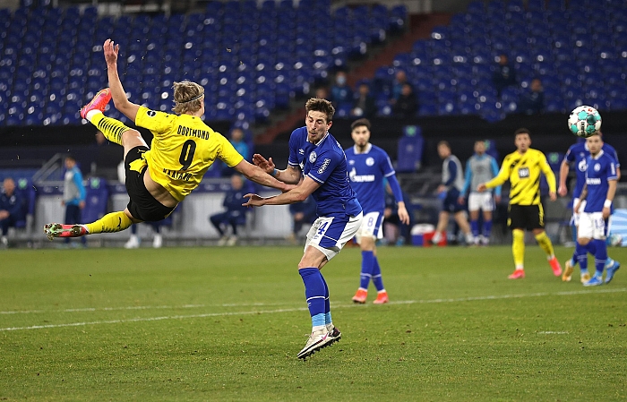 وانتظر دروتموند حتى الدقيقة 42 ليصل إلى شباك شالكة، بعدما افتك جادون سانشو الكرة من دفاع شالكة، وانطلق بها قبل أن يسددها قوية على يسار الحارس رالف فاهرمان.