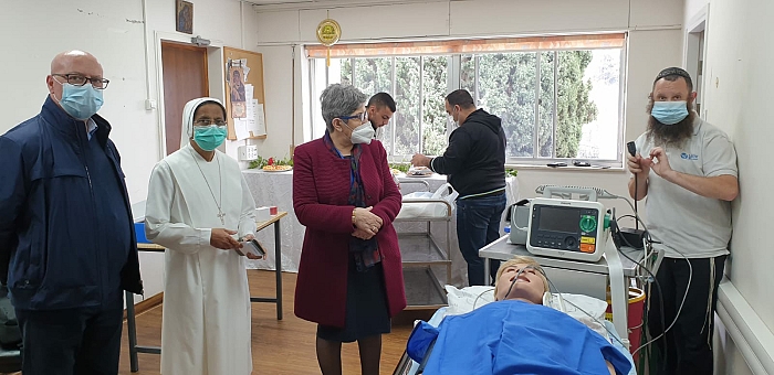 قام اليوم رئيس الجمعية السيد جريس بولس بتسليم الجهاز الخاص لاستعمال غرف الطوارئ للدكتور محمود عثامله مدير غرف الطوارئ والممرض المسؤول فراس غنطوس اضافة الى مجموعة من الاطباء والممرضين حيث اجروا تدريبا على الجهاز على امل ان يضيف الكثير لعملهم اليومي حيث يواصلون السعي