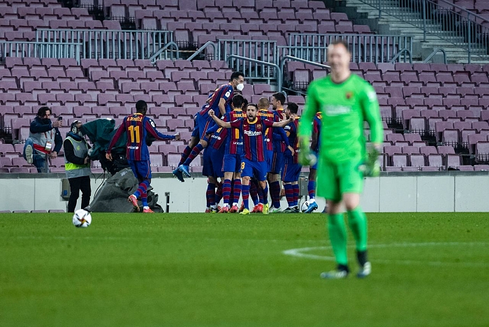 بذلك ينجح برشلونة في قلب خسارته ذهابا 0-2 إلى فوز 3-2، ويخطف تذكرة العبور للمباراة النهائية لكأس الملك.