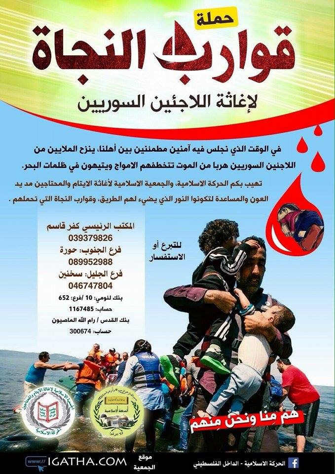 نهيب بكم أيها الأخوة الكرام والأخوات الكريمات ، يا من ذرفتم الدمع حزنا وأسى على أطفال سوريا أن تمدوا يد العون والإغاثة لأهلكم المستضعفين في سوريا ، يقول رسول الله صلى الله عليه وسلم : "من نفس عن مؤمن كربة من كرب الدنيا ، نفس الله عنه كربة من كرب يوم القيامة ، ومن يسر على معسر ، يسر الله عليه في الدنيا والآخرة ، ومن ستر مسلما ، ستره الله في الدنيا والآخرة ، والله في عون العبد ، ما كان العبد في عون أخيه " لذا ارتأينا في الحركة الإسلامية/الجمعية الإسلامية لإغاثة الأيتام والمحتاجين أن نقوم بخطوات عملية: · اطلاق حملة تبرعات في كافة المدن والقرى العربية في الداخل الفلسطيني لمدة عشرة أيام.