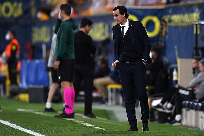 بدت علامات الرضا على وجه الإسباني أوناي إيمري، مدرب فياريال، بعد الفوز على أرسنال 2-1، في نصف نهائي الدوري الأوروبي.
