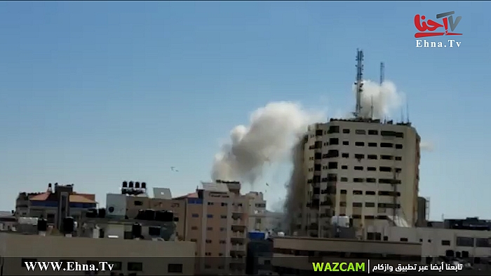 لحظة قصف الطائرات الحربية الإسرائيلية شقة سكنية في برج الأندلس شمالي غرب مدينة غزة