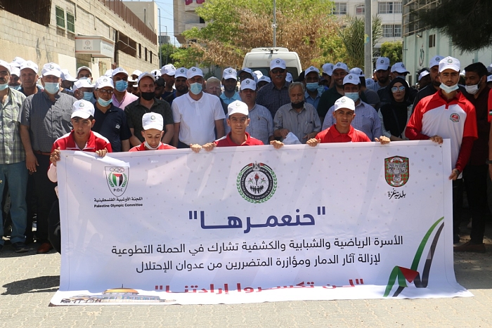 شارك الرياضيون في قطاع غزة، وبالتعاون مع بلدية غزة، في حملة تطوعية تحت عنوان "حنعمرها"، وذلك لإزالة آثار الحرب الإسرائيلية الأخيرة.