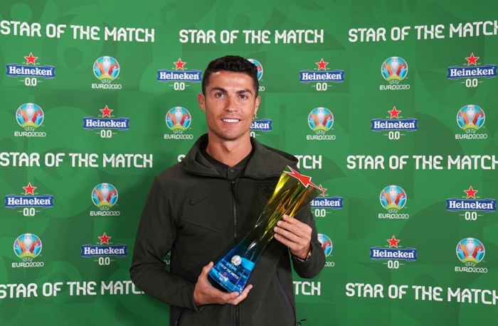 وبات رونالدو أول لاعب يشارك في خمس نسخ من اليورو، بدأها عام 2004 في البرتغال، مرورا بأعوام 2008، 2012، 2016 التي ظفر بلقبها، و2021.