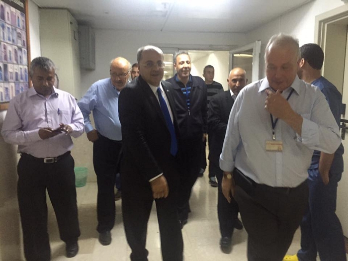 وقال النائب د. الطيبي:" جئنا هنا الى مستشفى المقاصد في القدس بعد ان شاهدنا صور وفيديوهات لاقتحام المشفى" .