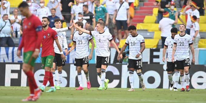 قلب المنتخب الألماني تأخره 0-1 أمام نظيره البرتغالي، إلى فوز كبير بنتيجة 4-2، في المباراة التي أقيمت على ستاد أليانز أرينا في مدينة ميونيخ، ضمن مباريات الجولة الثانية، من المجموعة السادسة لكأس الأمم الأوروبية.