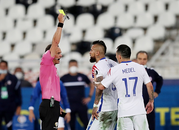 وخسرت تشيلي 0-1 أمام البرازيل التي لعبت بـ10 لاعبين منذ الدقيقة 49 بعد طرد جابرييل جيسوس، بسبب تدخل عنيف على يوجينيو مينا.