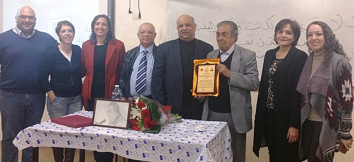 واختتم اللّقاء بتكريم المحتفى به بالورود، وبدرع مكتوب بالخطّ العربيّ المميّز بقلم المربّي عايد علي الصّالح، وبلوحة فنّيّة لوجه محمّد نفّاع بريشة الطّالبة المبدعة بيان عبد القادر.